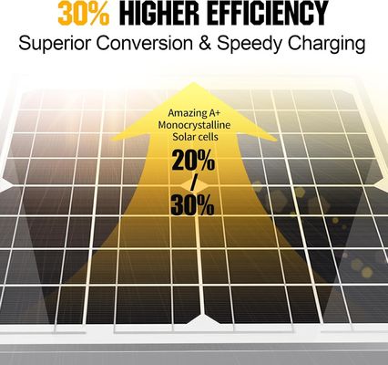 این پنل خورشیدی 20 وات، با سلول های خورشیدی تک کریستالی A+، بهره وری باتری 21 تا 30 درصد را به دست می آورد.طراحی شده برای شارژ و نگهداری باتری های شارژ پذیر 12 ولت مانند LiFePO4، لیتیوم یون، AGM، SLA، GEL، EFB، MF، و غیره، آن را مناسب برای حفظ شارژ باتری از تریلر، تراکتورها، کامیون ها، قایق ها، موتورسیکلت ها، RVs، خودروها، ماشین تراش، پمپ آب،و همچنین دستگاه هایی مثل درب گاراژ باز کننده و حصار الکترونیکی.