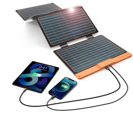 [چارجر خورشیدی دو فاکتور]ساخته شده در 1 * پورت های خروجی USB-A و 1 * USB-C. هر پورت USB است حداکثر 18w ((5v-3A/9V-2A/12V-1.5AMAX) ،