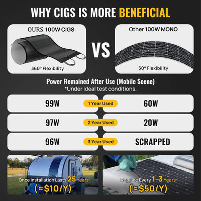 | برجسته کردن: | پانل های تک کریستال 100 وات,پنل های تک کریستالی CIGS,پانل خورشیدی آمورف سبک,CIGS monocrystalline panels,Lightweight amorphous solar panel |