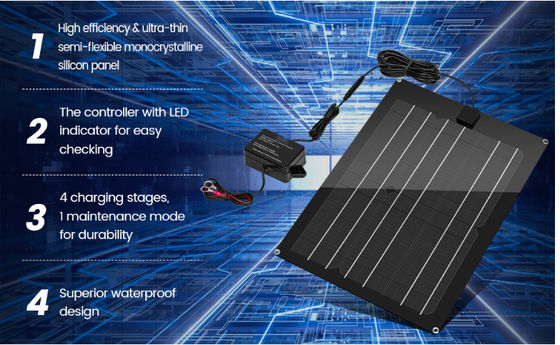 کیت پانل خورشیدی FTBM15پالس نگهداری و کنترل کننده شارژ هوشمند MPPTضد آب با باتری اسید سرب 12 ولت